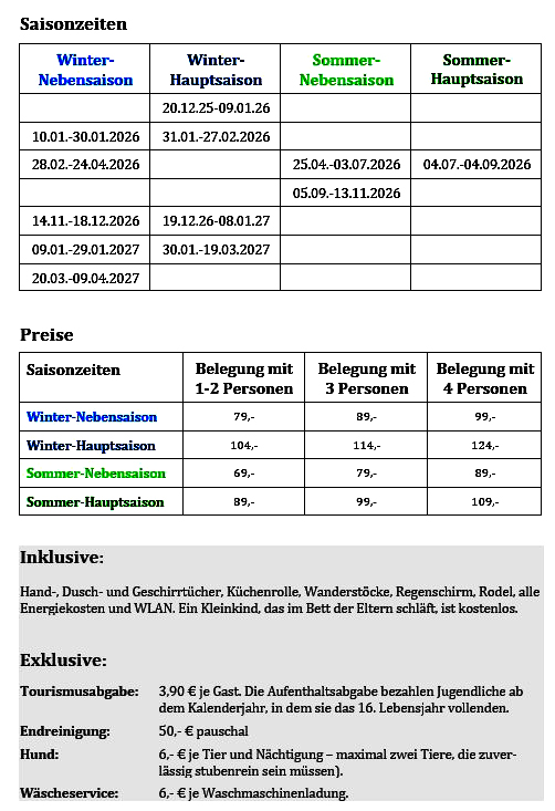 Buchbare Zeiten, Saisonzeiten und Preise